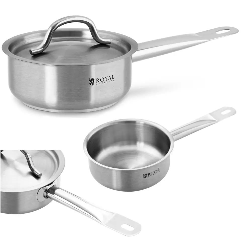 A saucepan with a lid by Royal Catering is an indispensable equipment for every kitchen. It is made of stainless steel , which guarantees a long service life even in professional operation and resistance to mechanical damage . It is easy to keep clean and retains its shine even after years of use. The thick bottom protects the food from burning and ensures better heat distribution.