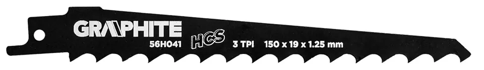 GRAPHITE sabre saw blade with a length of 150 mm and 3 teeth per inch of length designed for cutting m.in coarse wood, trimming branches and shrubs using saber saws. The maximum thickness of the materials is 100 mm. It is used in renovation, construction, demolition and amateur home work. Allows straight cutting. The saw blade causes lower dustiness during cutting compared to traditional methods. It allows cutting close to the edge and in hard-to-reach places.