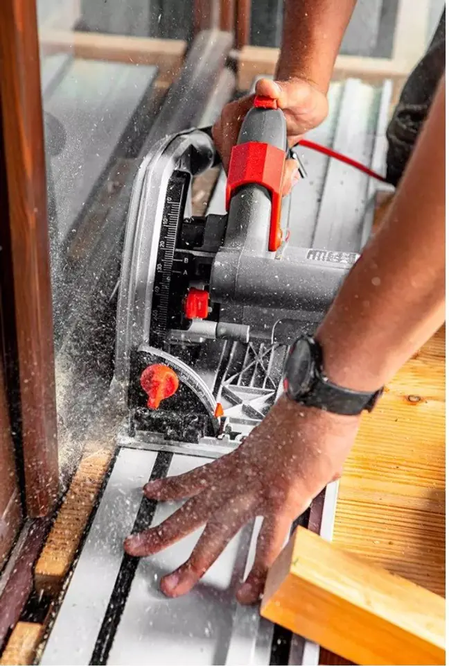 The design of the saw-sinker allows you to make plunge cuts anywhere in the material – without having to start cutting from the edges as is the case with traditional circular saws.