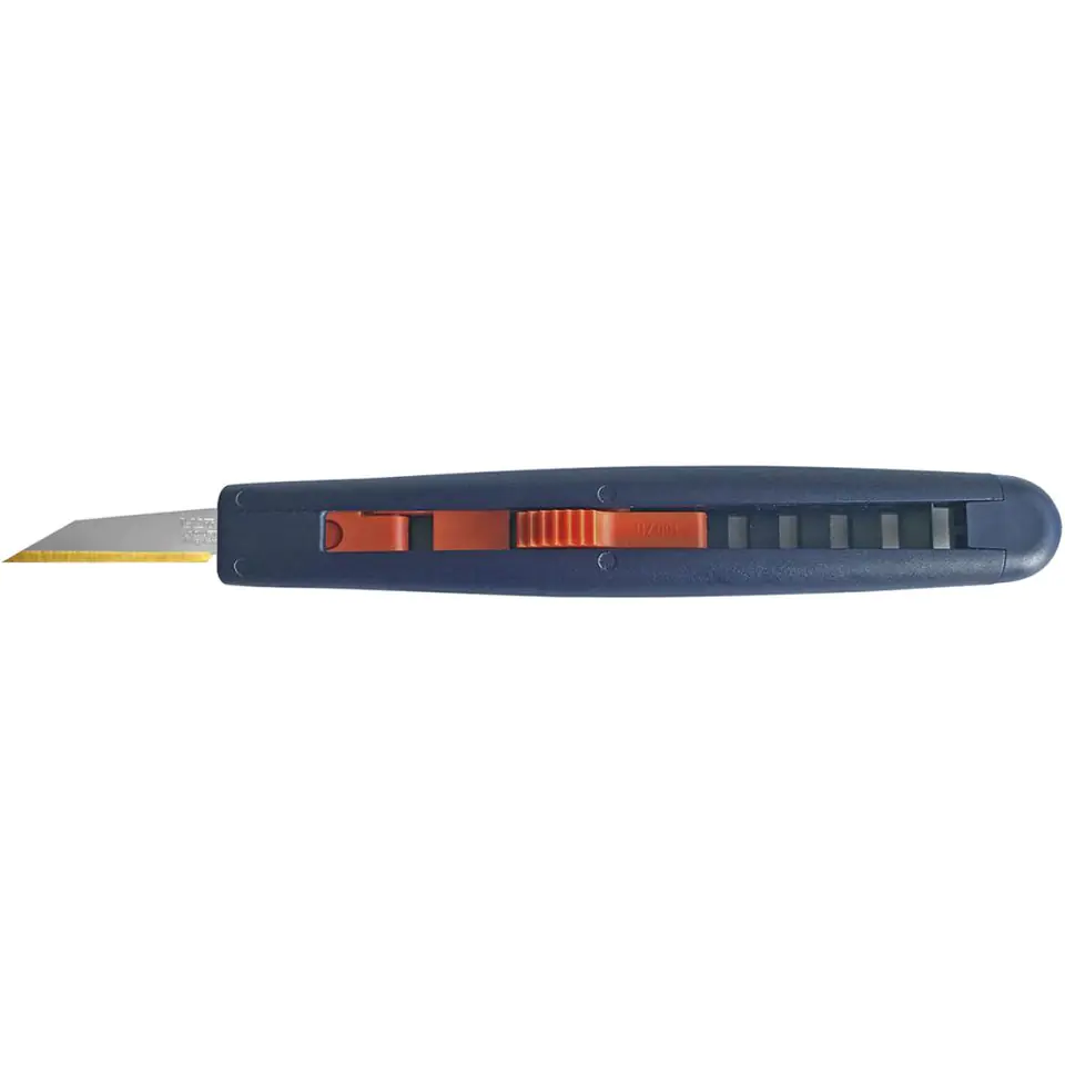Material: ABS plastic handle, with sliding mechanism. Straight blade, TiN coated. Clamping mechanism for easy blade change.