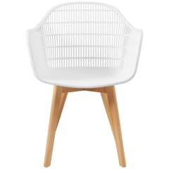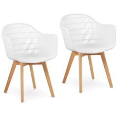 Scandinavian chairs by Fromm & Starck are perfect for restaurants, cafes, offices or waiting rooms. The seats with dimensions of 490 x 450 x 450 mm are made of durable plastic (PP) and the legs are made of wood. The backrests are made of perforated mesh, which guarantees excellent air flow. Each of the two chairs can withstand up to 150 kg. Overlays on four wooden legs protect the floor surface from scratches.