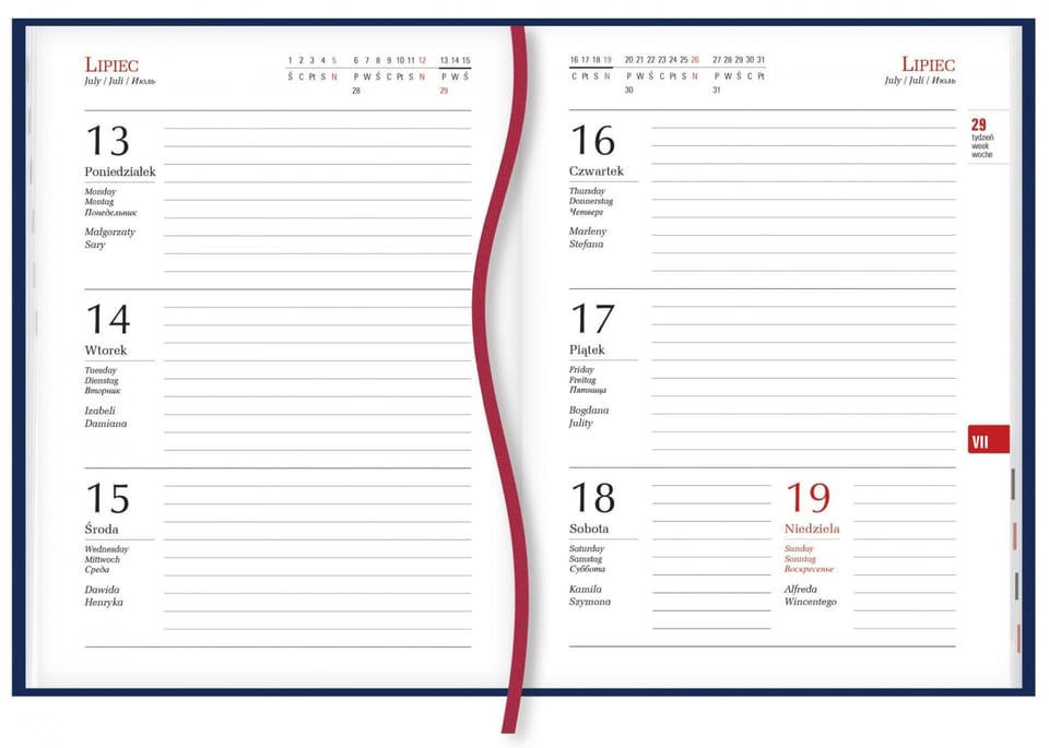 Calendar layout: 1 week - 2 pages