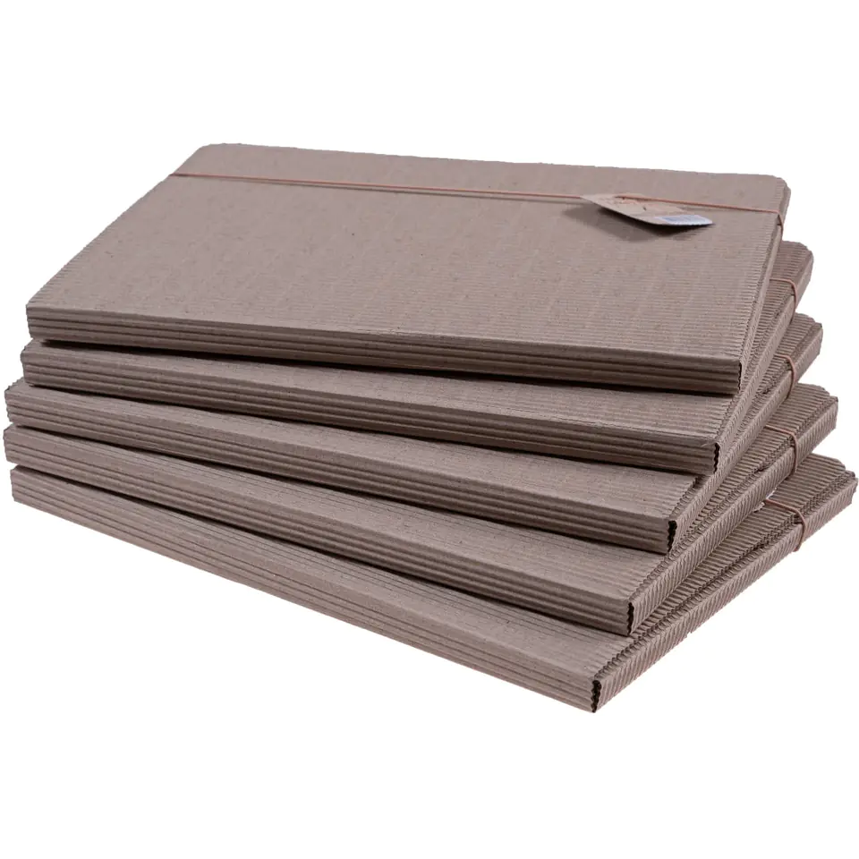 The EKO briefcase is made of gray-brown corrugated cardboard with a wave structure visible on the outside. The briefcase is rigid, making it very durable. Closed with an elastic band of the same color. Folder format 315x225 mm. In addition, it is 15 mm thick, thanks to which it is able to hold up to 60 sheets of "ordinary" paper. The package (set) contains 5 folders packed in heat-sealable foil. The above product is sold only in sets, i.e. 5 pieces.