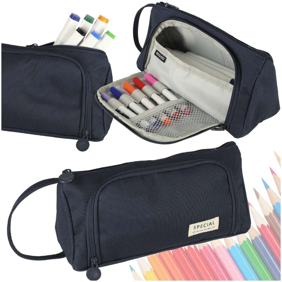 SCHOOL PENCIL CASE DOUBLE SACHET COSMETIC BAG NAVY BLUE