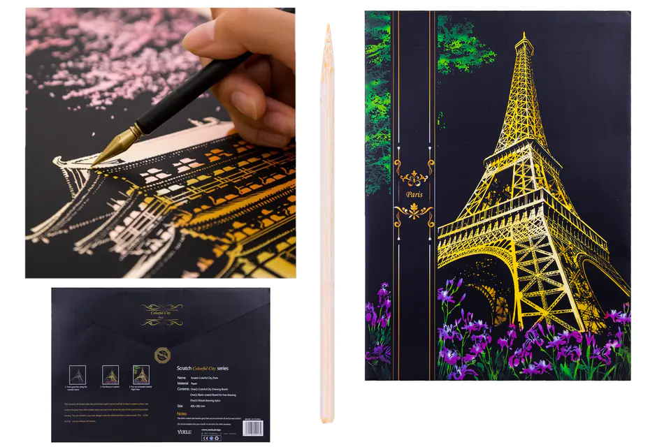 We present an amazing MAGIC SCRATCH CARD presenting . Behind its black surface, the scratch card hides the best night scenery in the world. Just scratch the gray lines with a wooden stylus, and each line will become a colorful part of the amazing night scenery.