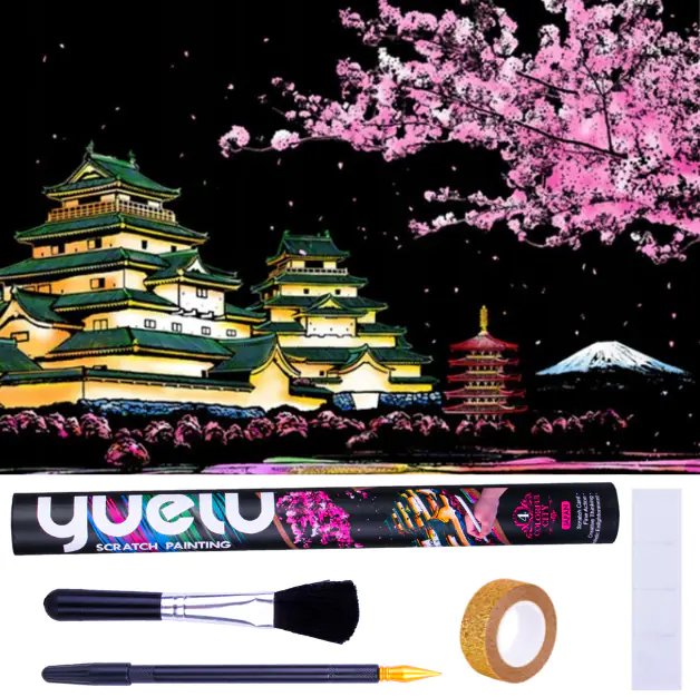 Introducing an amazing big MAGIC SCRATCH CARD. Behind its black surface, the scratch card hides the best night scenery in the world. Just scratch the gray lines with a wooden stylus, and each line will become a colorful part of the amazing night scenery.