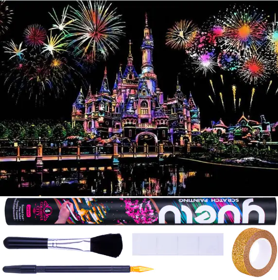 We present an amazing big MAGIC SCRATCH CARD - LOCK. Behind its black surface, the scratch card hides the best night scenery in the world. Just scratch the gray lines with a wooden stylus, and each line will become a colorful part of the amazing night scenery.