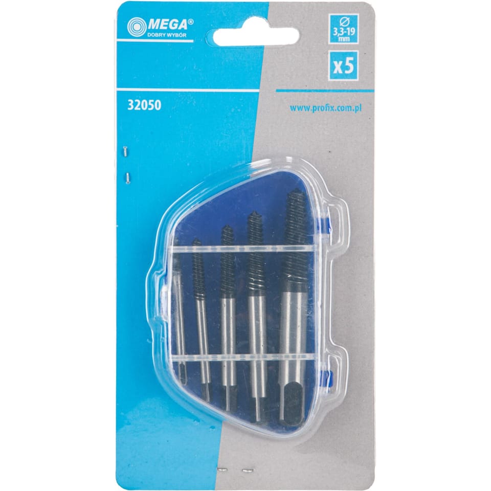 SCREW EXTRACTOR SET 5PCS: 3.3 - 19.0MM.