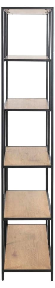 Seaford bookcase, 4 shelves, wild oak, base metal powder coated rough, matt black, 5, asymmetrical D: 114 width: 35 width: 185 cm