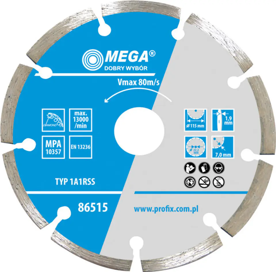 - For dry cutting of concrete, brick, clinker