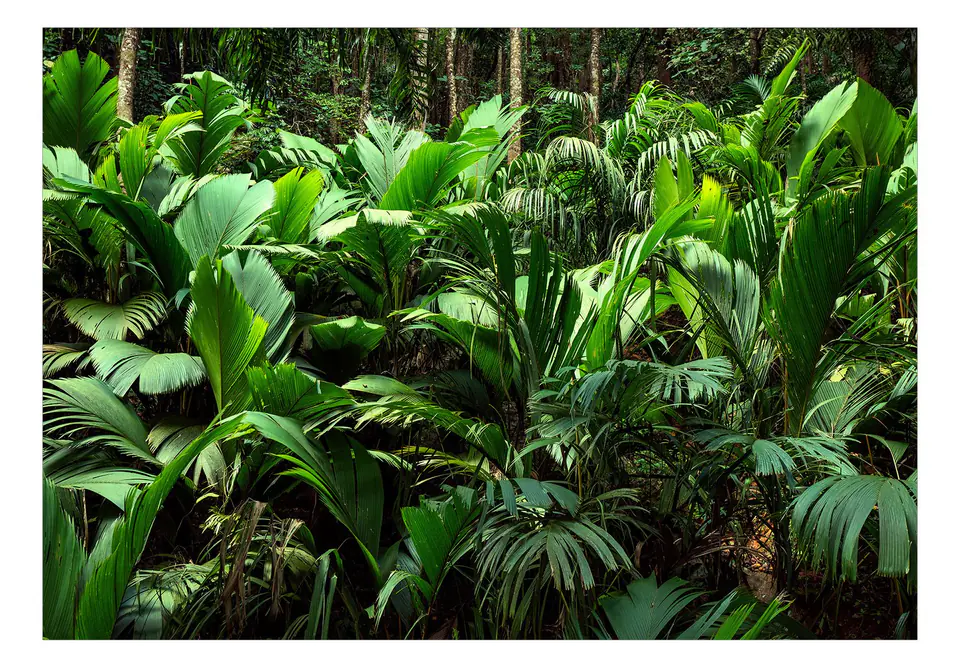 Self-adhesive wall mural "Self-adhesive mural - Jungle freshness" is printed in HD technology at a resolution of up to 600 dpi, thanks to which colors are vivid and details are perfectly reproduced, regardless of the format of the wallpaper. The print is applied to a self-adhesive film with a matte finish with a weight of 50 g/m². Both the material itself and the print used are waterproof and resistant to UV radiation, so that the colors do not fade, even with prolonged exposure to sunlight.