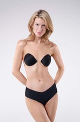 Self-supporting, fabric bra with push up function. It adheres perfectly to the body, thanks to the inner side lined with a special, harmless medical glue. Recommended for deep necklines and all creations with an open back. Beautifully collects and shapes breasts. It is actually invisible under clothing. Fastened at the front. After removing it, it is enough to wash it with water, it is reusable. Available in three colors.