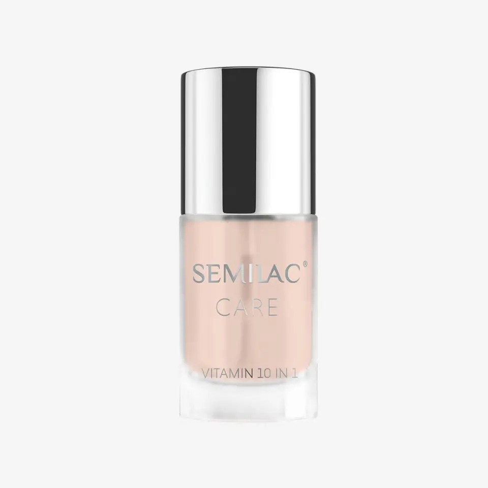 Semilac Vitamin 10in1 nail conditioner properly maintains hydration and strengthens the nail plate, and additionally increases its resistance to mechanical damage. It contains vitamins E, C, F, silicon and calcium, and its regular use supports the process of plate reconstruction, also improving the condition of nails.