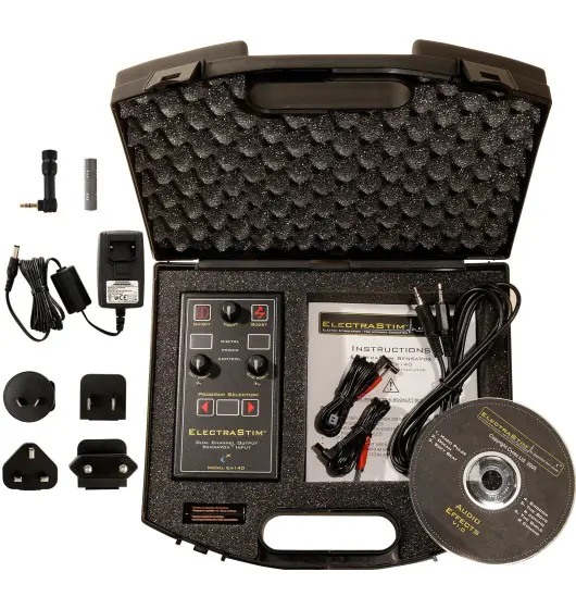 Electrostimulation set for connoisseurs. It has two separate output channels. Digitally controlled with the option of electrostimulation control via sound/voice using a microphone or cable. For use with bipolar accessories.