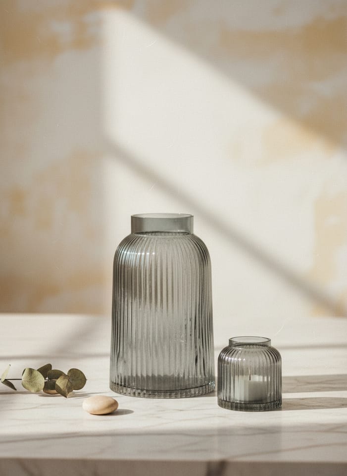 gray in embossing with vertical stripes. Nowadays, a vase