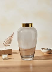 grey, smoked glass with a golden edge at the base. Beautiful and modern. Nowadays, a vase is not