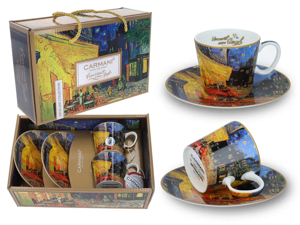 Set 2 cups of espresso - V. van Gogh, Terrace of the café at night CARMANI