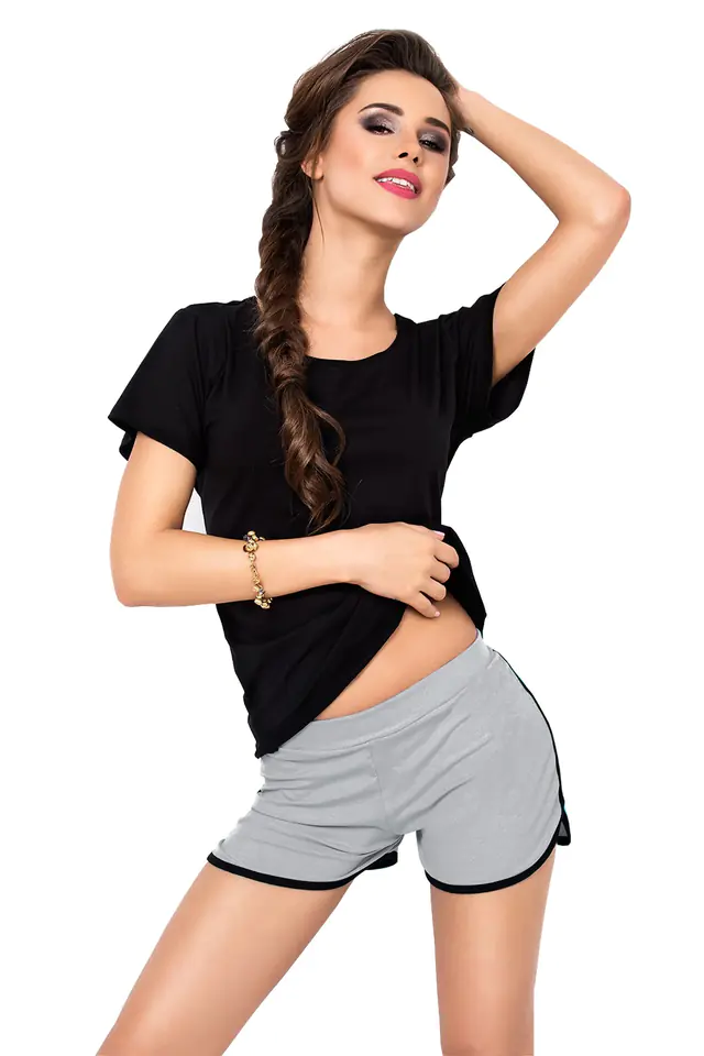 WISKZOWY KOMPLECIK Z KRÓTKIM RĘKAWKIEM ORAZ SZORTAMI Z MAŁYMI WYCIĘCIAMI PO BOKACH. DOSTĘPNE WERSJE KOLORYSTYCZNE ZAWSZE Z CZARNĄ KOSZULKĄ