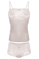 KOMPLET SKŁADA SIĘ Z KOSZULKI I MAJTEK GÓRA KOSZULKI USZYTA JEST Z PRZEJRZYSTEJ KORONKI KOSZULKA DOPASOWUJE SIĘ DO KSZTAŁTÓW CIAŁA NIEZWYKLE MIĘKKA I PRZYJEMNA W NOSZENIU RAMIACZKA CIENKIE PRZÓD MAJTEK USZYTY JEST Z PRZEJRZYSTEJ KORONKI, A TYŁ Z WISKOZY