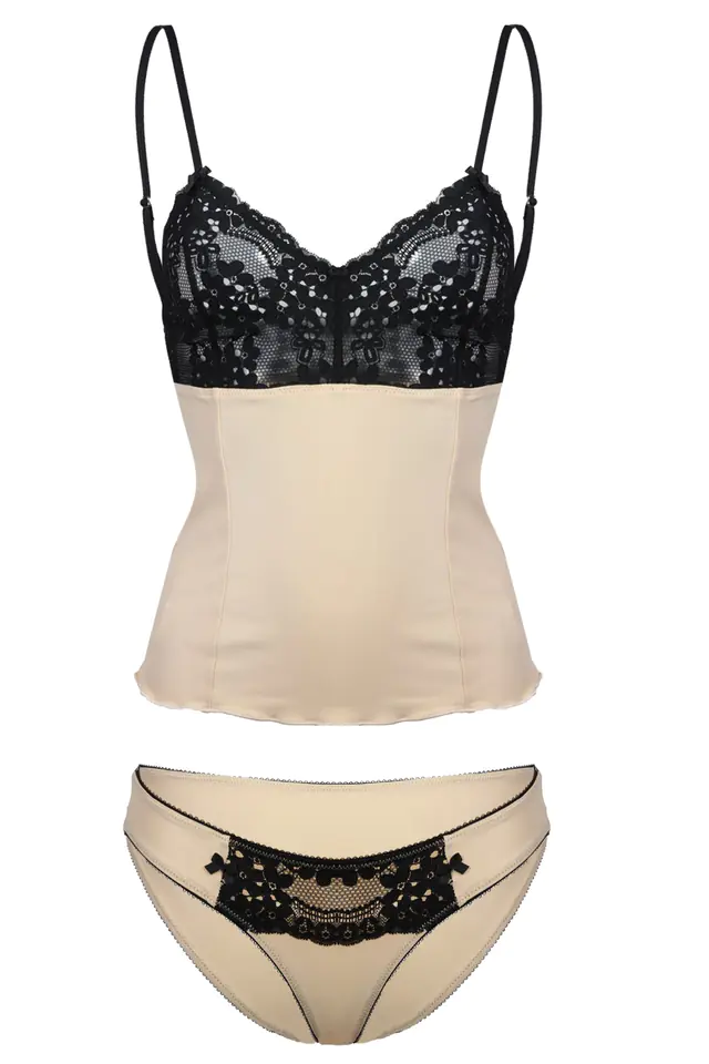 SEKSOWNY ELASTYCZNY KOMPLECIK Z KOSZULKĄ ORAZ FIGI. GÓRA WYKONANA Z DELIKATNEJ KORONECZKI ODSŁANIAJĄCEJ BIUST, RAMIĄCZKA CIENKIE IREGULOWANE. FIGI WYSZYTE KORONKĄ Z OZDOBNYMI KOKARDKAMI PO BOKACH. DOSTĘPNE WERSJE KOLORYSTYCZNE: CZARNY I BEŻ ( CZARNA KORONKA)