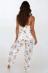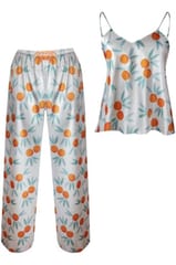 Comfortable, two-piece pajamas made of soft, printed satin. Designed to emphasize the bust line, enchant with a delicate neckline and beautiful, thin straps, the length of which can be adjusted. Long pants with comfortable legs, on a soft elastic band at the waist. Composition: 100% polyester.