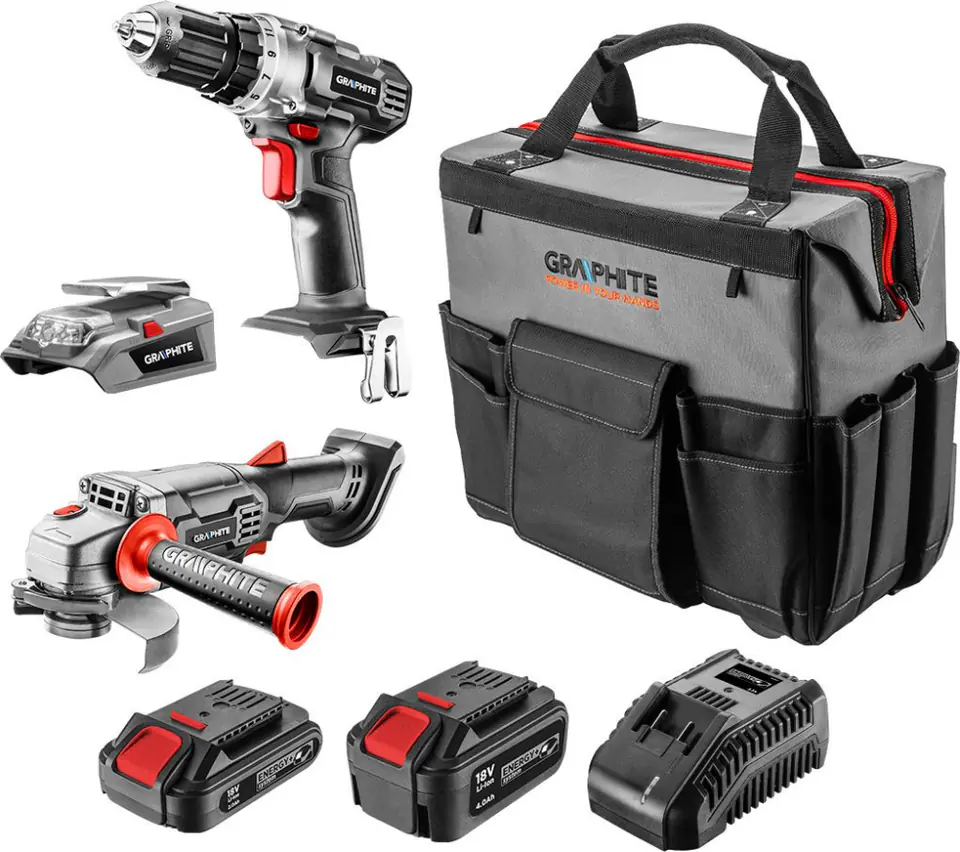 Set E+: drill(58G000), grinder(58G003), USB adapter(58G025), 2x battery(58G001/04),charger 58G002