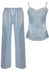 Kto kocha pastele? Poznaj najnowszy komplecik Melanie od DKaren, w którym króluje pastelowy błękit. To urocze połączenie słodkiego koloru z białą koronką i wdziękiem szlachetnej, miękkiej satyny. Wygoda i świetny wygląd w jednym. Jeśli masz ochotę na bluzeczkę na ramiączkach w delikatnej, kobiecej wersji a do tego komfortowe spodnie - śmiało rezerwuj go dla siebie. Skład: 100% poliester.