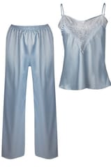 Who loves pastels? Meet the latest Melanie comp from DKaren, which is dominated by pastel blue. It is a charming combination of sweet color with white lace and the grace of noble, soft satin. Convenience and great looks in one. If you fancy a blouse with straps in a delicate, feminine version and comfortable pants - go ahead and book it for yourself. Composition: 100% polyester.