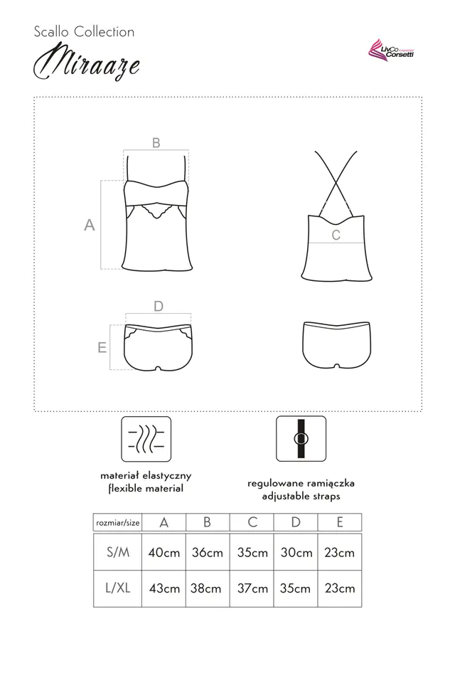 Lovely sleeping completus - Miraaze. Model made of satin in a beautiful, light pink color, combined with black lace acacents. Blouse fitted, with stitching under the bust and deep neckline this time on the back, which was supplemented here with straps in the "cross" version. Shorts on an elastic band, very neat. Composition: 92% polyester, 8% elastane.
