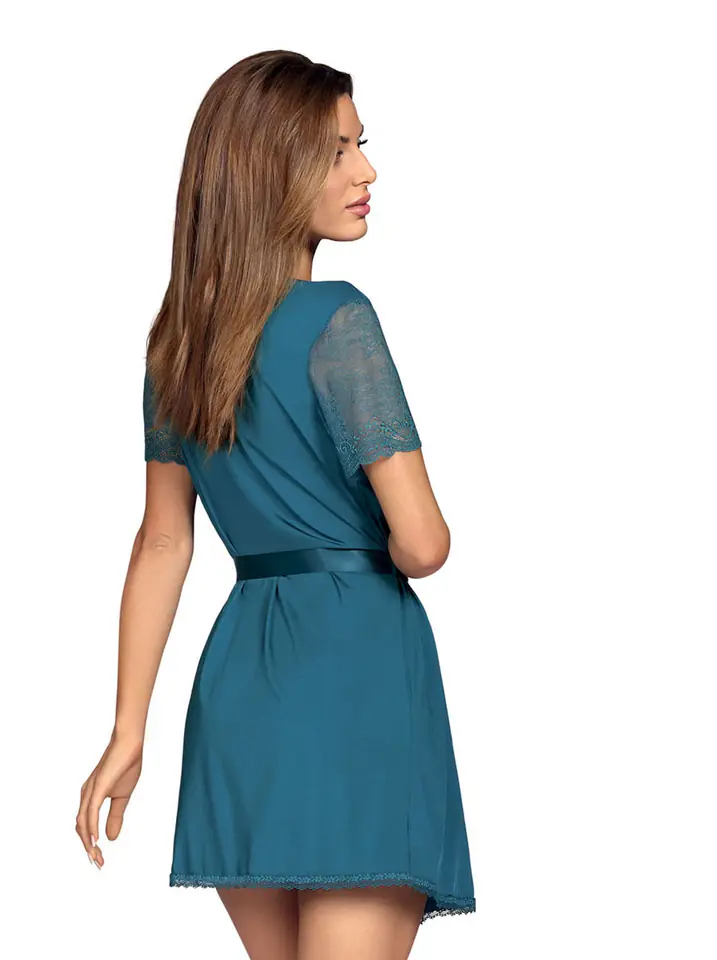 SET OBSESSIVE MIAMOR BATHROBE AND THONG Turquoise, Size L / XL