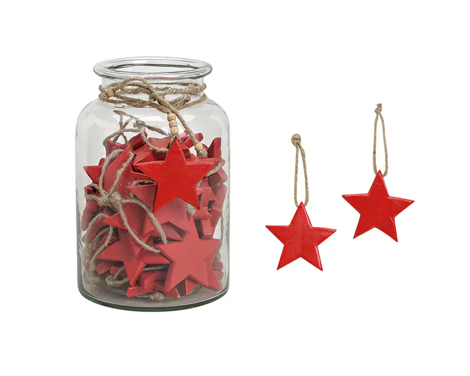 Set of 36 pendants - red stars 8cm