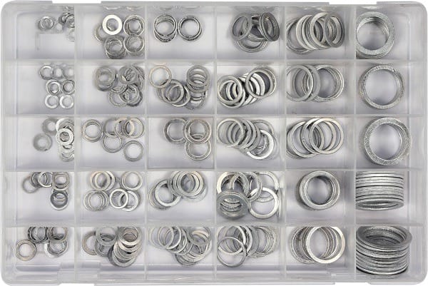 A set of 300 pieces of aluminum washers for oil drain plugs.