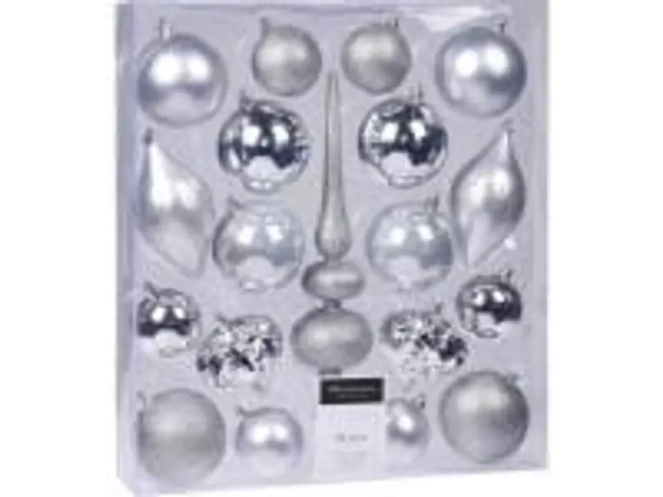Set of baubles decorations for the Christmas tree 19 pieces silver