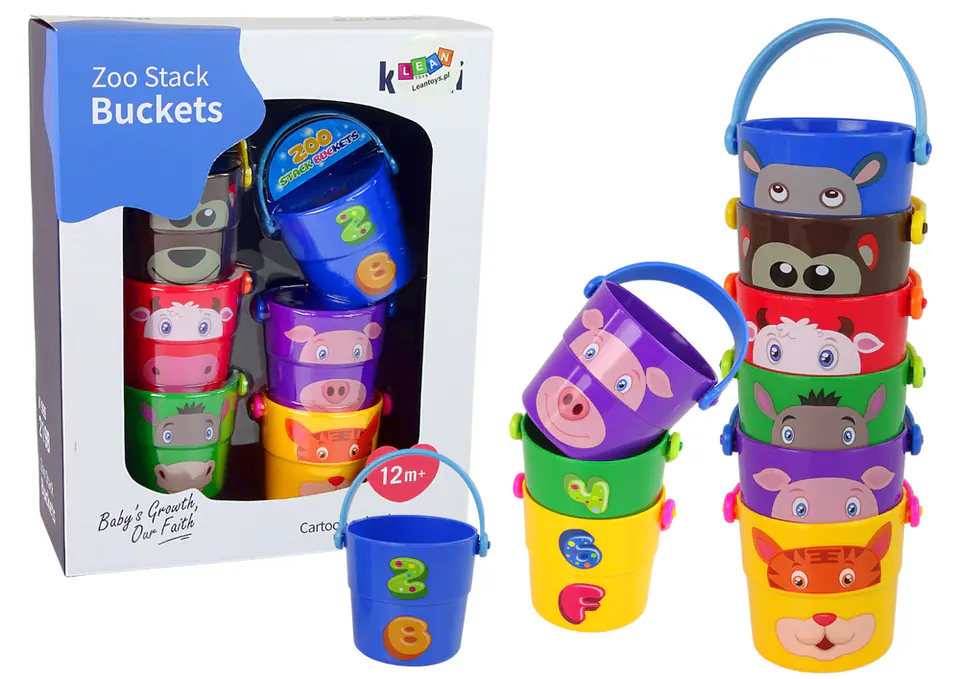 Set of Colorful Buckets with Animals Pyramid