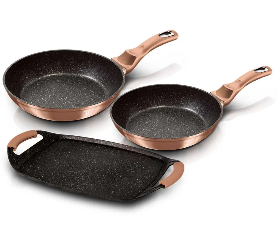 Set of 2 pans + BERLINGER HAUS grill plate from the ROSE GOLD collection. Pans: Ø22cm, Ø26cm,