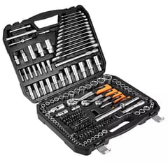 Set of keys, 216 elements: flat-mesh wrenches 12 pcs. Sizes: 8, 10, 11, 12, 13, 14, 15, 16, 17, 18, 19, 22 mm, Sockets 1/2" 15pcs. Sizes: 10, 11, 12, 13, 14, 15, 17, 19, 20, 21, 22, 24, 27, 30, 32 mm, Long sockets 1/2" 5 pcs. Sizes: 16, 17, 18, 19, 22 mm, Ratchet 1/4" 72 teeth, 155 mm, Ratchet 1/2" 72 teeth, 255 mm, Ratchet 3/8" 72 teeth, 200 mm, Sockets for candles 1/2" 2pcs. sizes: 16, 21 mm, Knob with carrier 1/2" 250 mm, Universal joint 1/2", Universal joint 3/8", Universal joint 1/4", Extensions 1/2" 2pcs. sizes: 125, 250 mm, Torx sockets 1/2" 3 pcs. sizes: E20, E22, E24, Sockets for bits 2pcs. sizes: T55, T60, Sockets 3/8" 10pcs. sizes: 10, 11, 12, 13, 14, 15, 16, 17, 18, 19 mm, Long sockets 3/8" 6pcs. sizes: 10, 11, 12, 13, 14, 15 mm, torx sockets 3/8" 6 pcs. sizes: E10, E11, E12, E14, E16, E18, Extension 3/8" 150 mm, Hexagonal socket for spark plugs 18 mm, Sockets 1/4" 13pcs. sizes: 4, 4.5, 5, 5.5, 6, 7, 8, 9, 10, 11, 12, 13, 14 mm, Cap long 1/4" 7pcs. sizes: 4, 5, 6, 7, 8, 9, 10 mm, torx sockets 1/4" 5 pcs. sizes: E4, E5, E6, E7, E8, Knob with carrier 1/4" 150 mm, Extension 1/4" 2pcs. sizes: 50, 100 mm, Tip holder 3pcs. Sizes: 1/4"&1/4", 3/8"&5/16, 1/2"&5/16", Allen Keys 7pcs. sizes: 1.27, 1.5, 2, 2.5, 3, 4, 5 mm, Magnetic swivel holder for small bits, Bits 5/16" 30pcs. sizes: H5.5, H6, H6.5, H7, H8; M5, M6, M8, M10; T25, T27, T30, T35, T40, T40, T45, T50; T27H, T30H, T35H, T40H, T45H, T50H; PH3, PH4; PZ3, PZ4; SL6, SL6.5, SL8, Bits 1/4" 44pcs. sizes: H5.5, H6, H6.5, H7, H8; M5, M6, M8, M10; T25, T27, T30, T35, T40, T45; T27H, T30H, T35H, T40H, T45H; PH1, PH2, PH3; PZ1, PZ2, PZ3; SL6, SL6.5, SL8; H3H, H4H, H5H, H6H; ()S1-S2 (4-6-8mm (x)6-8-10mm (Y)1-2-3mm, 1/4" bit caps 30pcs. sizes: T25, T27, T30, T35, T40, T40 T45, T50; T27H, T30H, T35H, T40H, T45H, T50H; PH3, PH4 PZ3, PZ4; SL6, SL6.5, SL8; M5, M6, M8, M10; H5.5, H6, H6.5, H7, H8