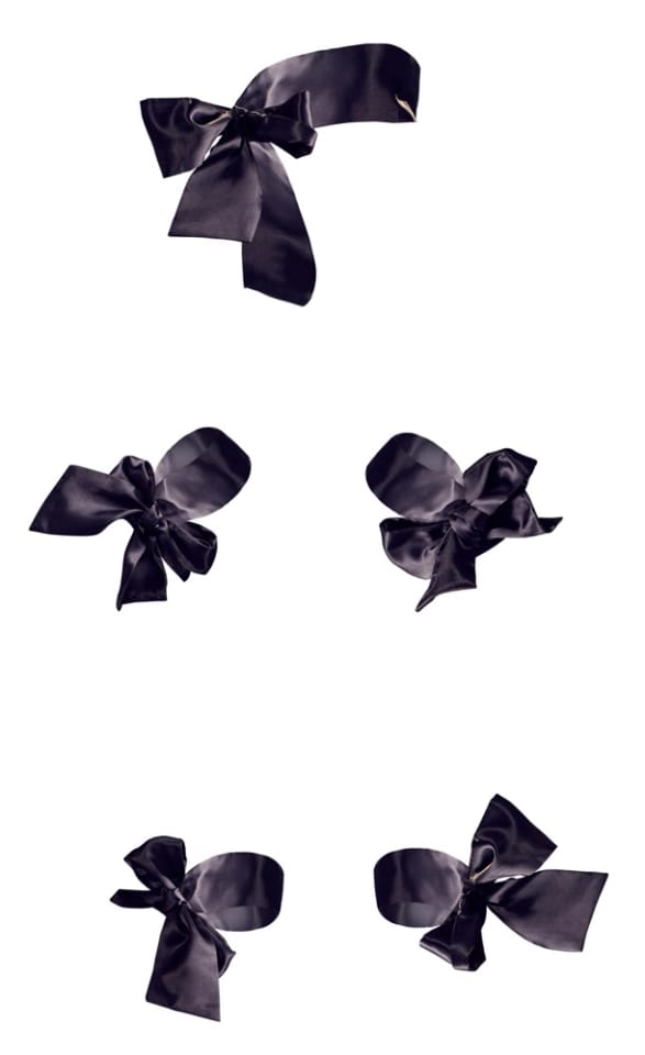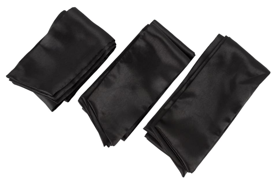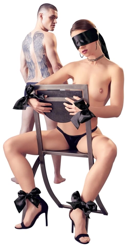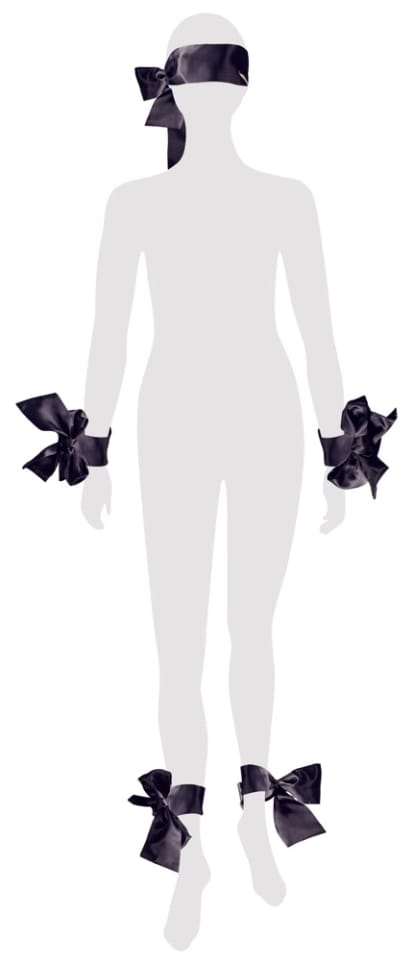 5pcs set of satin ribbons with 1 long ribbon for the head and 4 shorter ribbons for tying hands and feet. Made of glossy, two-layer material. Ideal for sensual bondage games.