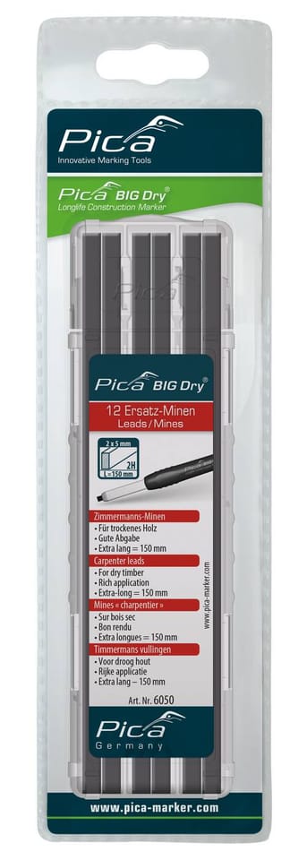 Set of spare inserts for carpentry pencils BIG Dry, for carpenters, graphite 2H Pica