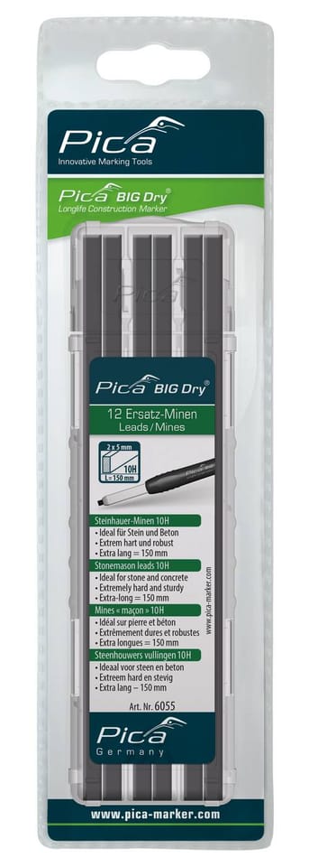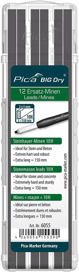 Set of spare inserts for carpentry pencils BIG Dry, for stonemasons, graphite 10H Pica