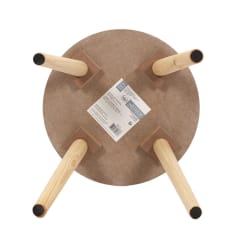 A set of two Arty auxiliary tables with interesting pastel colors will complement the interior in boho or Scandinavian style. Tables with a diameter of 48 cm and 33 cm juxtaposed with each other create an interesting collage of colors. The height of the larger table is 43 cm, while the smaller one is 40 cm. Such dimensions allow you to slightly slide a smaller table under a larger one. The legs of the tables are made of pine wood. Thanks to oiling, you can see patterns and knots of natural wood. Table tops are a very durable MDF board decorated with veneer with a fashionable pattern.