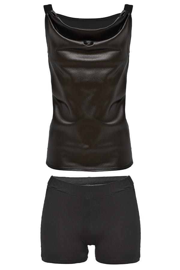 KOMPLET WISKOZOWY.PRZÓD KOSZULKI Z SATYNY ,ODKRYTE RAMIONA,DEKOLT FALA.DO KOMPLETU SPODENKI NA GUMIE.