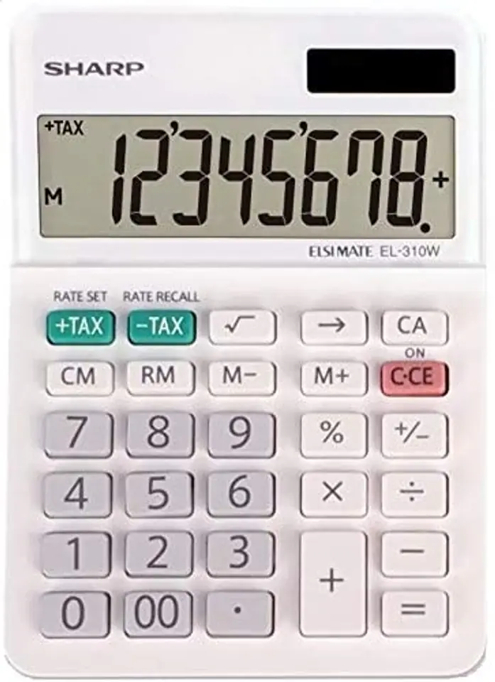 The EL310ANWH calculator has a slanted 8 digit large LCD display to make sure you can always see the screen without having to pick the calculator up, optimising your viewing.This EL310AN calculator provides you with 4 memory keys to ensure you can do multiple calculations without losing your results. This Sharp semi desktop calculator has all the usual functions plus a square root and percentage button to ensure you can easily do accountancy equations.The semi desktop calculator from Sharp is solar powered with a battery back up to ensure you are never without your calculator.