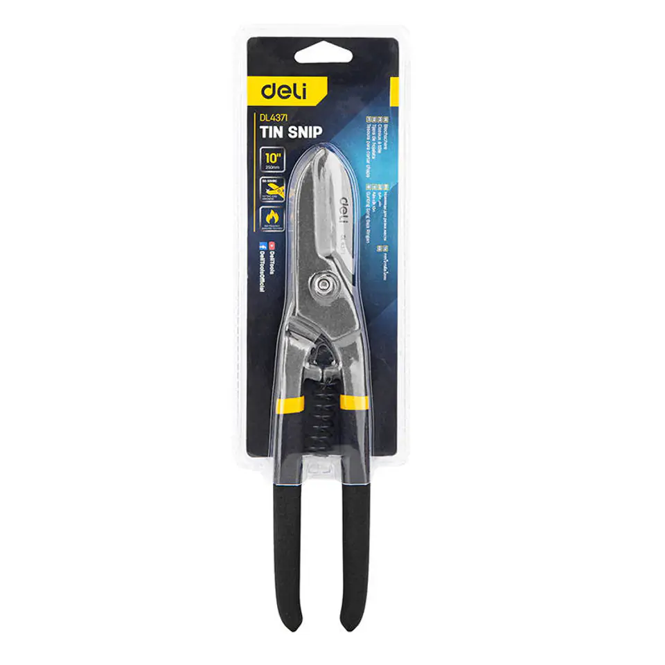Equip yourself with Deli Tools EDL4371 sheet metal shears for the convenience and ease of sheet metal processing. The tool is made of high-grade carbon steel alloy, resulting in a combination of extraordinary efficiency and efficiency. The ergonomic plastic handle guarantees a firm grip and precise control during use.