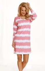 Koszula nocna z długim rękawem. Wykonana z delikatnej bawełny. Luźny, wygodny krój, fantazyjnie wycięty dekolt. Długość przed kolano. Skład: 100% bawełna.