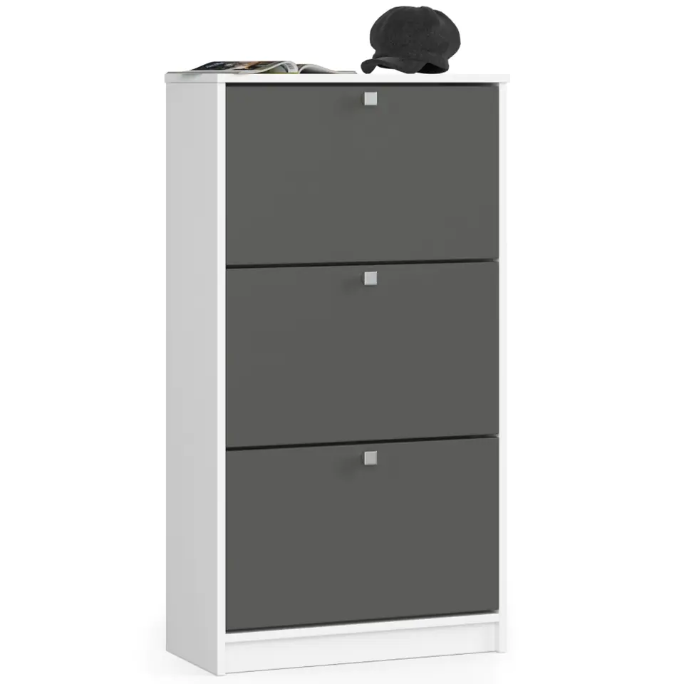 Shoe cabinet 3 hinged doors 60 cm - white-graphite gray