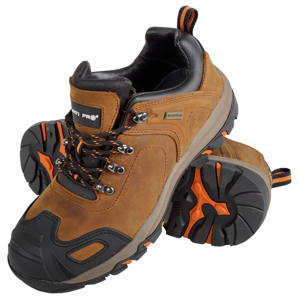 - MATERIAL: Top: high-quality grain trekking "crazy horse" leather, outer structure at the front reinforced with TPR material, high-quality metal eyelets. Lining: leather. Insole: repleceable, leather. Sole: anti-slip rubber (on ceramic surface), deep tread increases adhesion to the ground