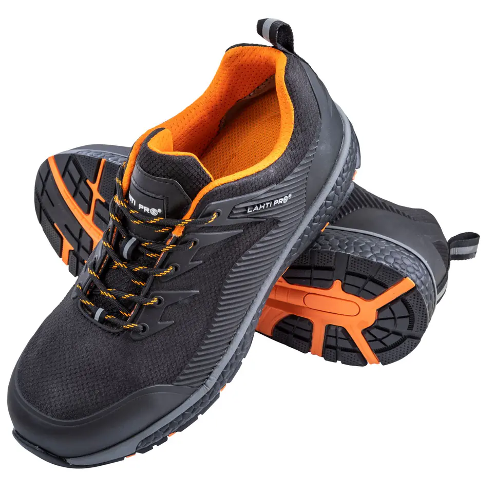 SHOES, RIP-STOP MESH, BLACK-ORANGE, S1P SRC, "45", CE, LAHTI
