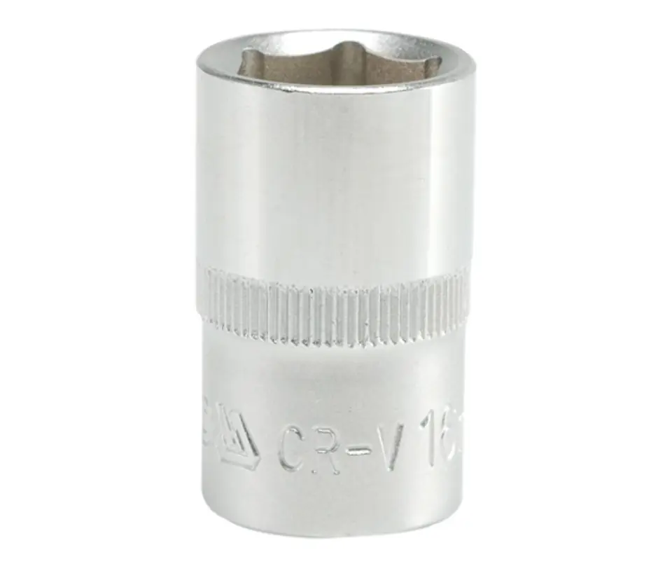 SHORT 6-POINT CHROME-PLATED 1/2'' 16MM SOCKET