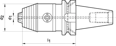 Made of: alloyed steel for carburizing, core tensile strength approx. 950 N/mm2, minimum hardening depth 0.5 mm. Cone acc. to DIN 254. Hardness after hardening: 58 ± 2 HRC. Short design with central coolant supply, handle and mandrel from one part. The clamping (using a hex wrench) allows a significant increase in clamping force compared to traditional chucks. At the same time, the handle is protected against loosening at left turns and fast deceleration from high rotational speeds.