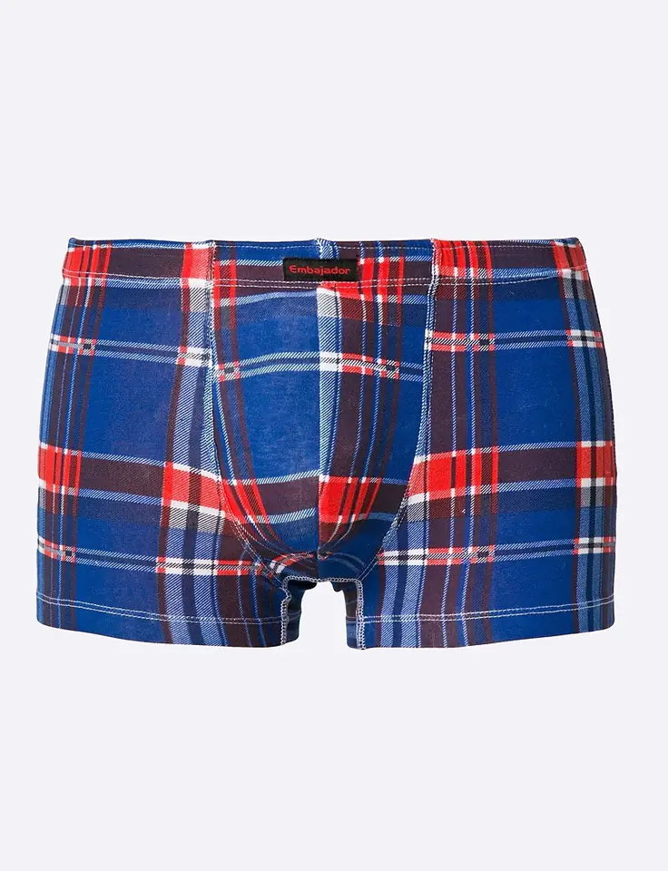 Stylish men's shorts with a contoured front, made of pleasant to the body cotton (95%) with the addition of elastane (5%). Soft print in modern check.
